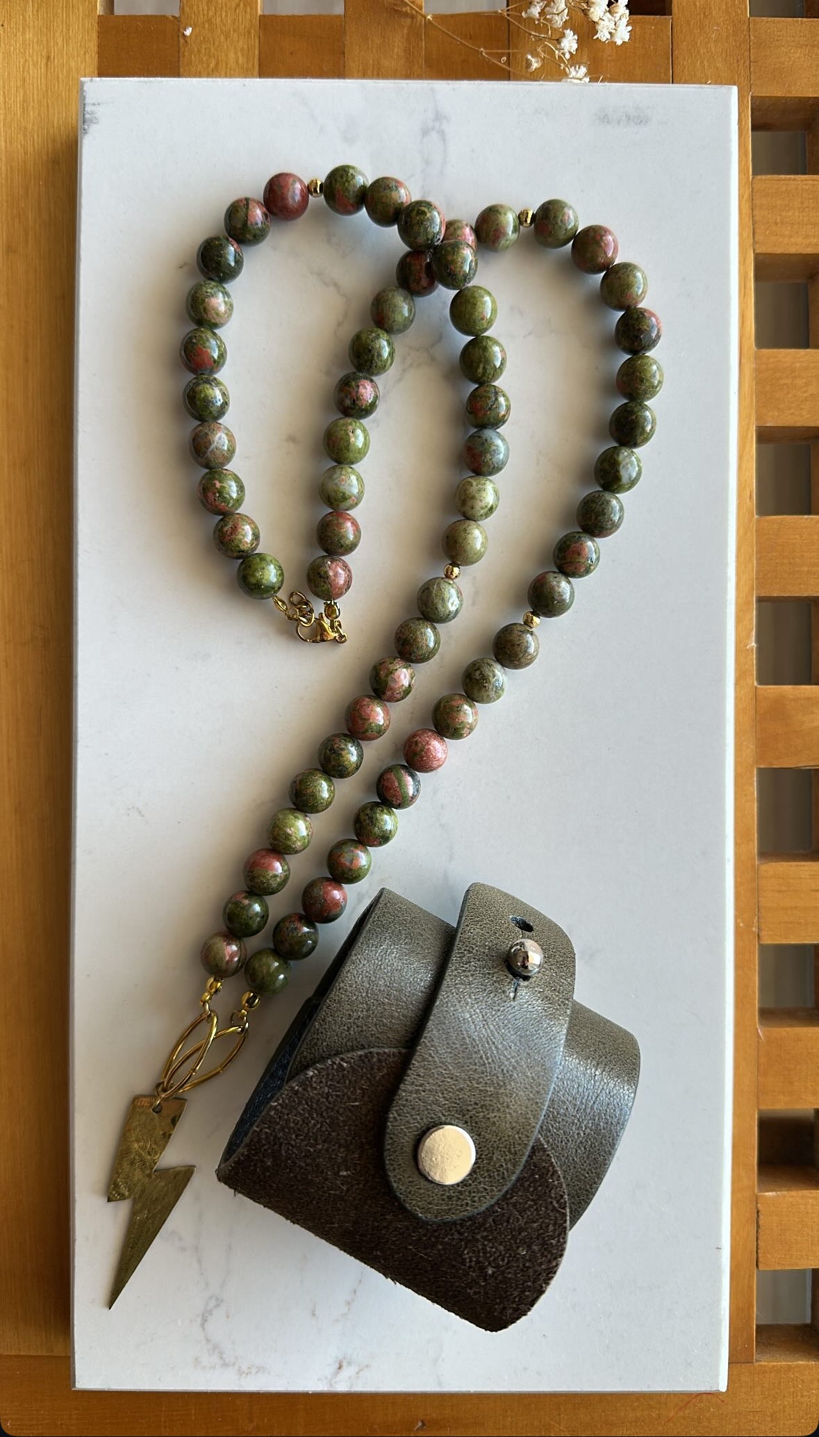 ๐ง๐ฅ๐๐ก๐ฆ๐. ๐๐๐ก๐๐๐ฅ๐๐ $๐๐๐๐ Colgante en piedra unakita natural clara y dije de orfebrerรญa