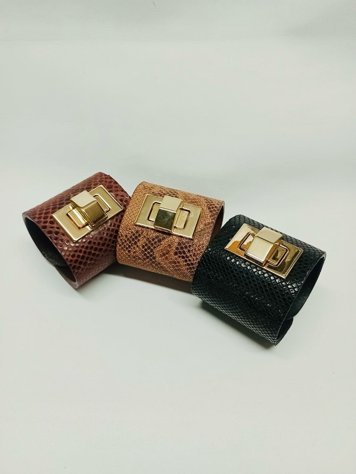 Brazalete 100% cuero • Diseño TORNIQUETE • herraje color oro • comodín que va con todo! • color NEGRO