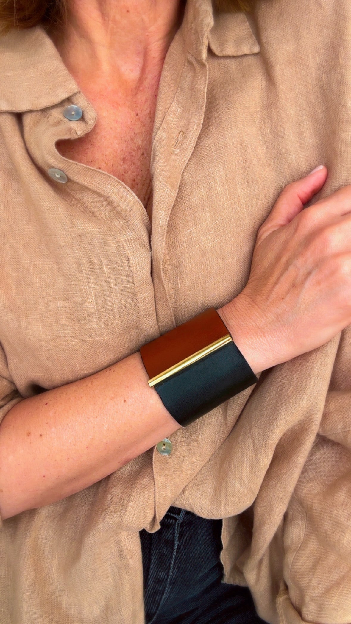 Brazalete en cuero color NEGRO & HABANO • sumá muuucha onda y glam a ese look de noche con diseño y tonos mega sensuales